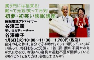 2026年のスタートは、睡眠環境アドバイザー谷澤三義と笑いヨガティーチャー谷澤幸子のコラボ講座。